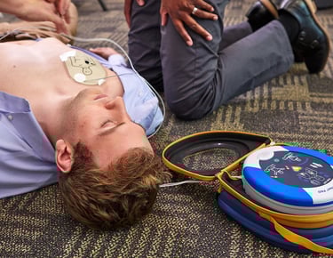 Un Défibrillateur Automatisé Externe (DAE) est un dispositif médical qui aide à la réanimation de victimes d’arrêt cardiaque. Accompagné d’un massage cardiaque, le défibrillateur contribue à augmenter significativement les chances de survie.
